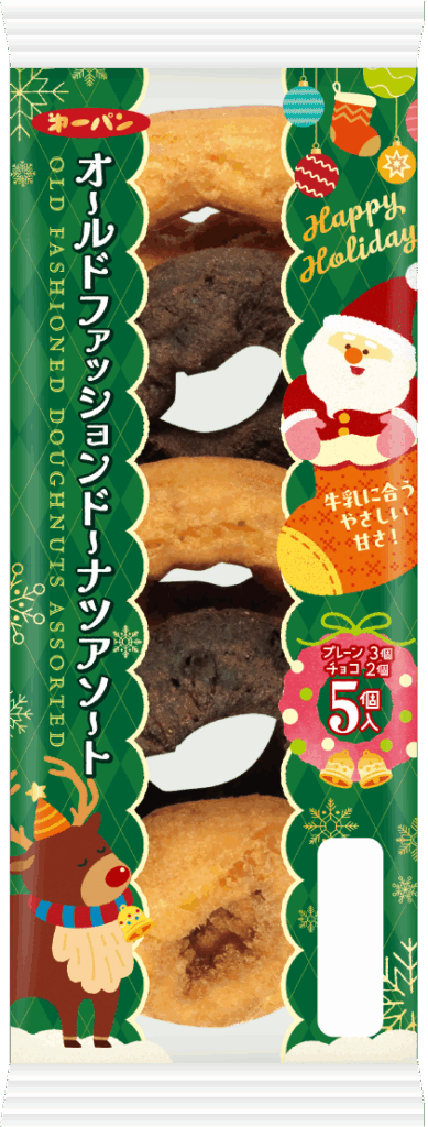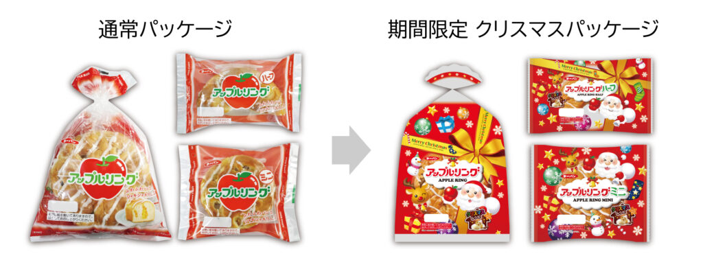 第一屋製パン株式会社(本社:東京都小平市、代表取締役社長:細貝 正統、以下:第一パン)は、人気商品の「アップルリング」シリーズと「オールドファッションドーナツ」シリーズの計6品を期間限定でクリスマスデザインパッケージに変更し、12月1日(月)~12月25日(木)まで販売いたします。