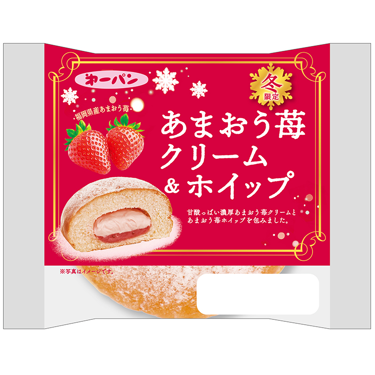 NEW甘酸っぱい濃厚あまおう苺クリームとあまおう苺ホイップを包みました。