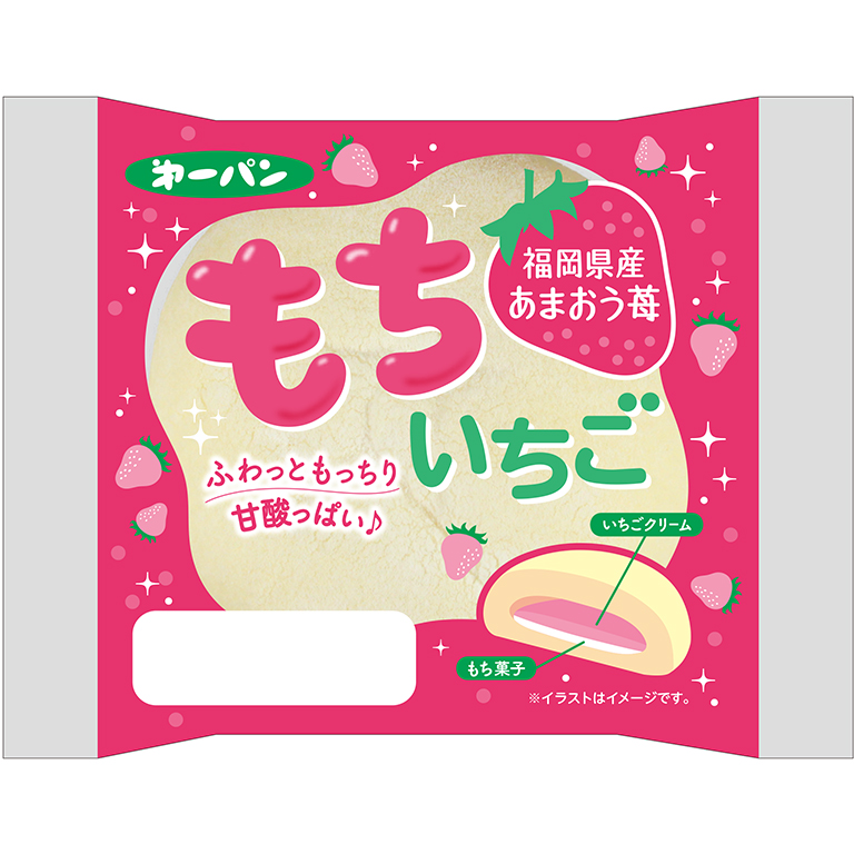 NEW甘酸っぱいあまおういちごクリームともち菓子をやわらかな白パン生地で包みました。
