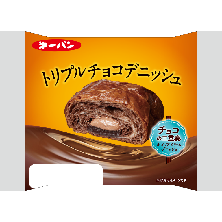 NEWチョコホイップとチョコクリームとチョコデニッシュが楽しめる菓子パンです。