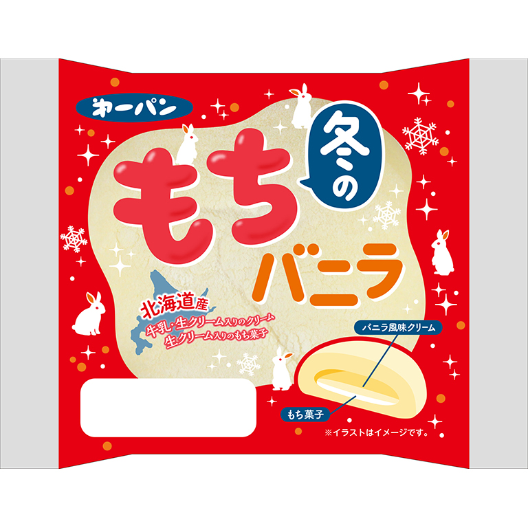 北海道産生クリーム入りのもち菓子を柔らかな白パン生地で包みました。
