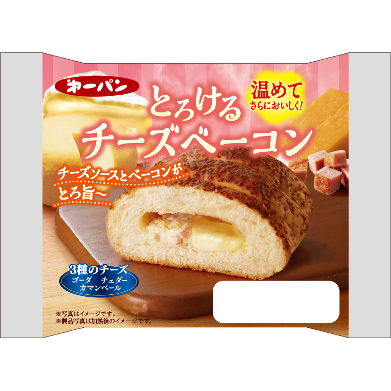 NEWとろりとしたチーズソースとベーコンチーズフィリングを包み、チーズパウダーをまぶし、焼き上げました。