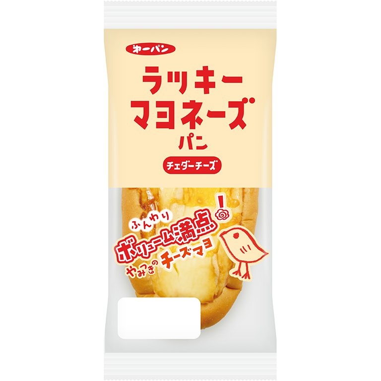 NEWラッキーマヨネーズとチェダーチーズをトッピングして焼き上げました。