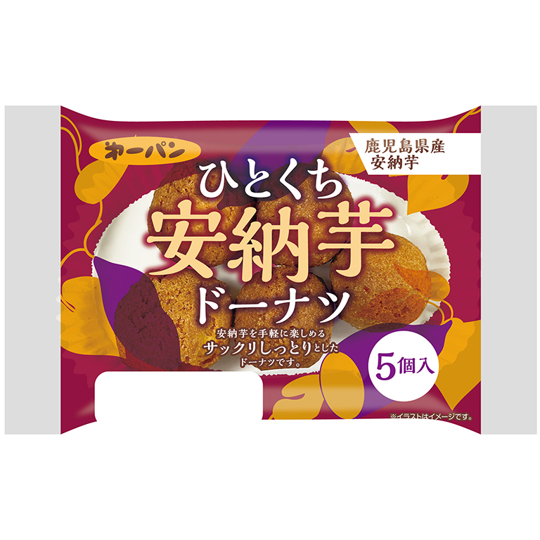 鹿児島県産安納芋を使用した安納芋餡を練り込んだ、サックリしっとりとしたひとくちサイズのドーナツです。